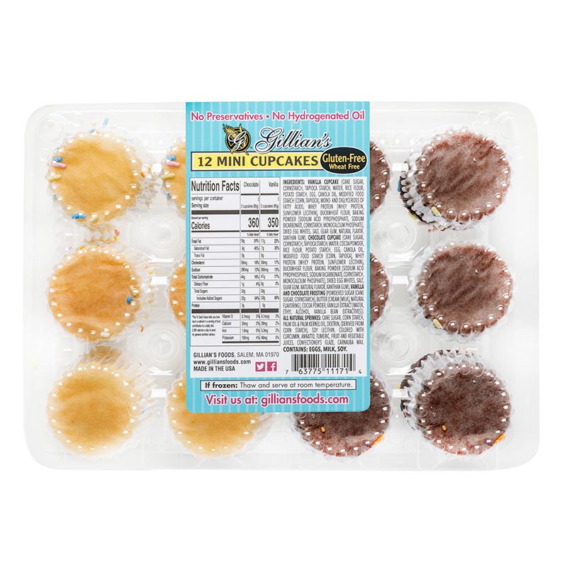 Need a bite size version of our large cupcakes for your next party? This pack of 12 assorted mini cupcakes will hit the spot! Packs are split with 6 vanilla and 6 chocolate minis that are sure to please everyone! This item is frozen, thaw to room temp when you’re ready to enjoy these sweet treats!